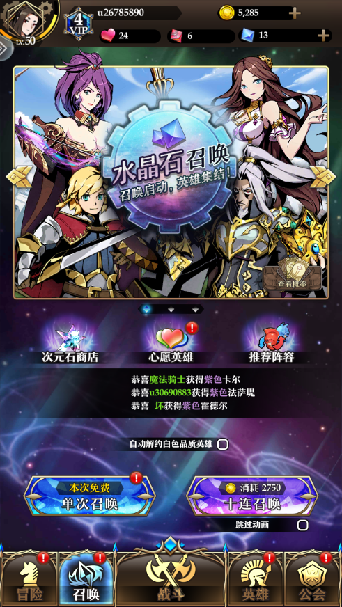 3、骑士等级:骑士等级类似于其他游戏中的馆子,到达指定骑士等级的时候可以直接得到一个瓦露吉莉,然后每天根据骑士官职来领取英雄碎片。