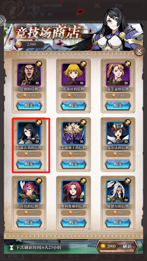 1、竞技场商店:可以通过竞技场商店兑换瓦露吉莉信物,800个竞技场币兑换50个。