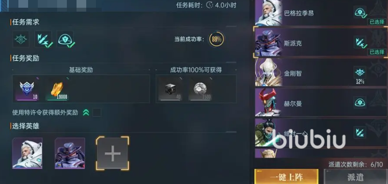 贸易任务有稀有度区别,稀有度越高基础奖励约好,当然耗时越长,所需的英雄数量也会增加。能否完成任务会有一个成功率的设定,这个需要上阵英雄满足贸易所需的特质,这样才能提升成功率。不足100%有几率失败,达到100%则还有额外奖励。