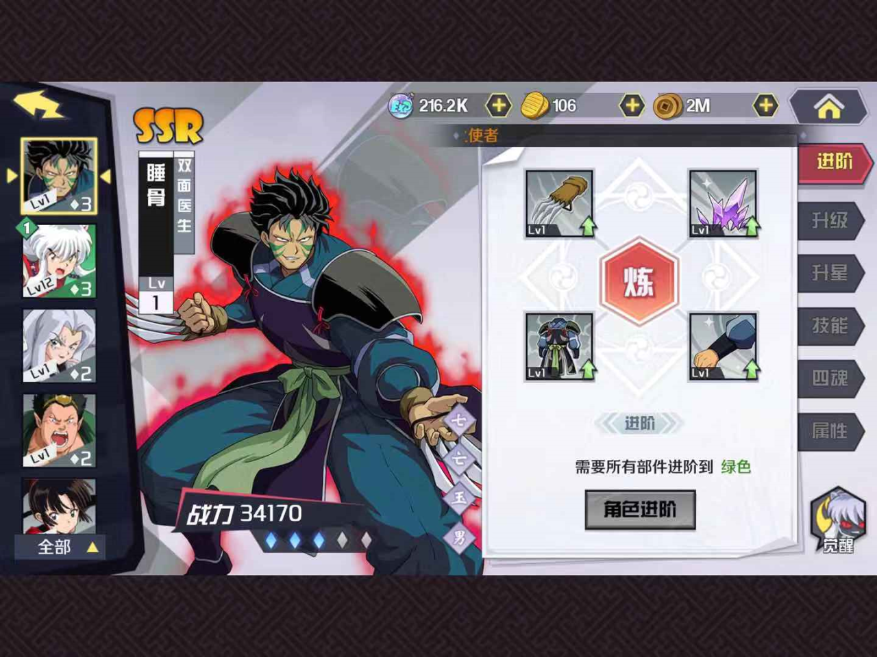 2020年12月17日 10:45 来源:田园桑犬夜叉动画中的睡骨是个善恶不定的人,承受着双重人格的折磨,也是七人众之一,在游戏中是SSR品质,那么犬夜叉觉醒睡骨怎么样呢?今天小编就带大家来分析一下睡骨的具体实力,以及使用心得。