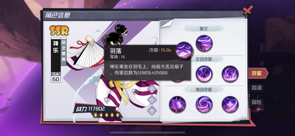 2技能:羽落。(当前版本神乐奥义积攒慢的重要原因。)