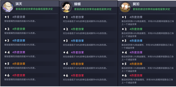 百妇足和螳螂精打击飞或者是破盾,拉伤害这一套都是必不可少的,装备了螳螂精2件的时候是15暴击,百妇足2件也是15,加上本身所带的5左右暴击,一般情况暴击能到40都是很正常的,别小看这多40的暴击对一些高伤害角色直接就是质的飞跃。