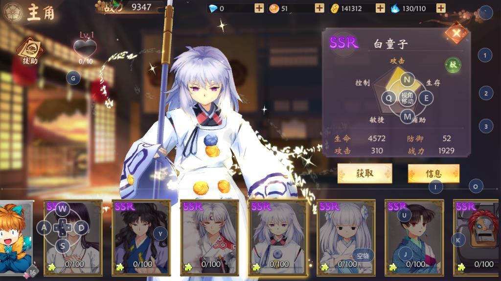 白童子的品级为最高的SSR,在定位上是一个近战的爆发角色,一般该角色会在家族对战中使用,面对的都是敌对家族的其他玩家。