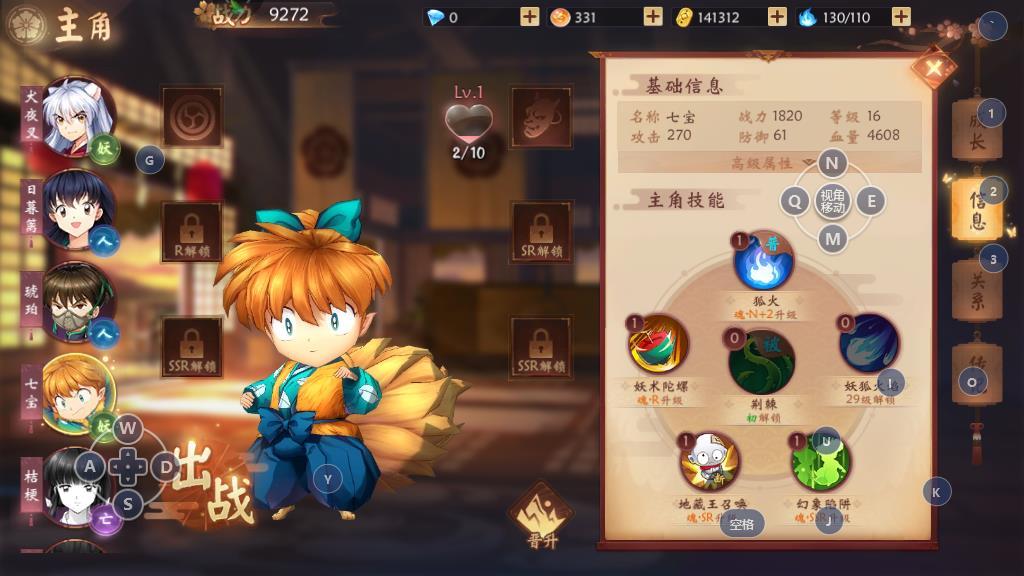 七宝:这个角色相信很多玩家都比较的熟悉,但是使用的次数却不是很多,主要的原因还是因为七宝是一个N卡,大部分玩家都认为没有任何作用。但是在PVP中,七宝却是非常强力的。战斗中七宝可以使用妖术陀螺来召唤单位攻击目标,而被敌人追击的时候可以使用地藏王召唤来控制敌人,眩晕的时间长达两秒。而在自身血量不足的时候使用妖狐火焰攻击敌人,会将50%的伤害量直接转换为恢复提供给七宝。