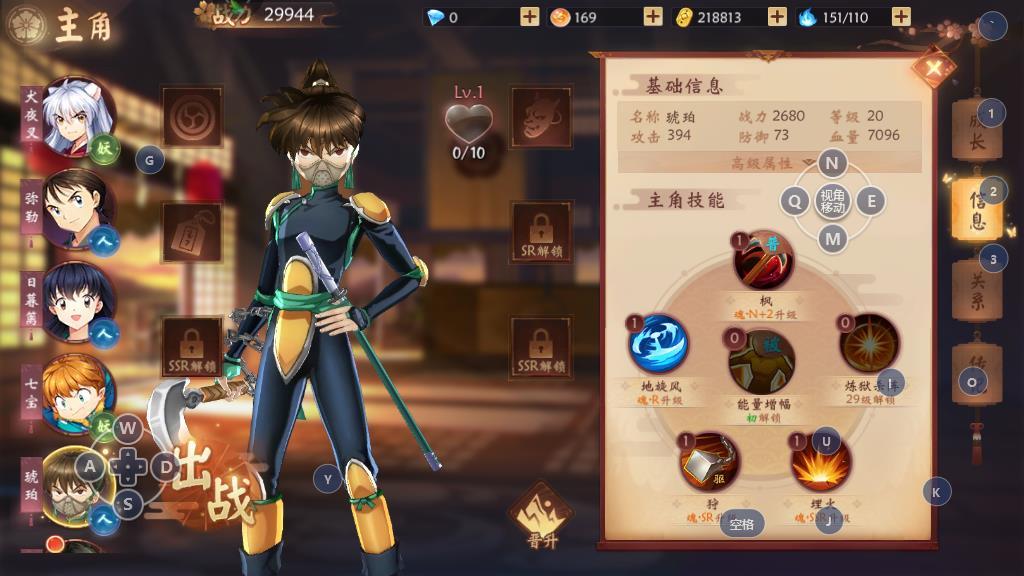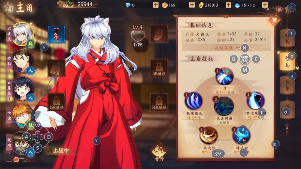 犬夜叉:这个角色虽然说是一个基础角色,但是在品级上为R级别,算是前中期相对较高的,而且后续还可以通过升阶来提升。在能力上犬夜叉的作用比较综合,虽然说是一个近战的角色。但是不管生存还是输出都比较的不错,尤其是在解锁被动技能之后,受到伤害会提升角色的闪避能力,进一步的增加生存。该角色适合玩家在前中期使用,品级培养到SR级别即可。