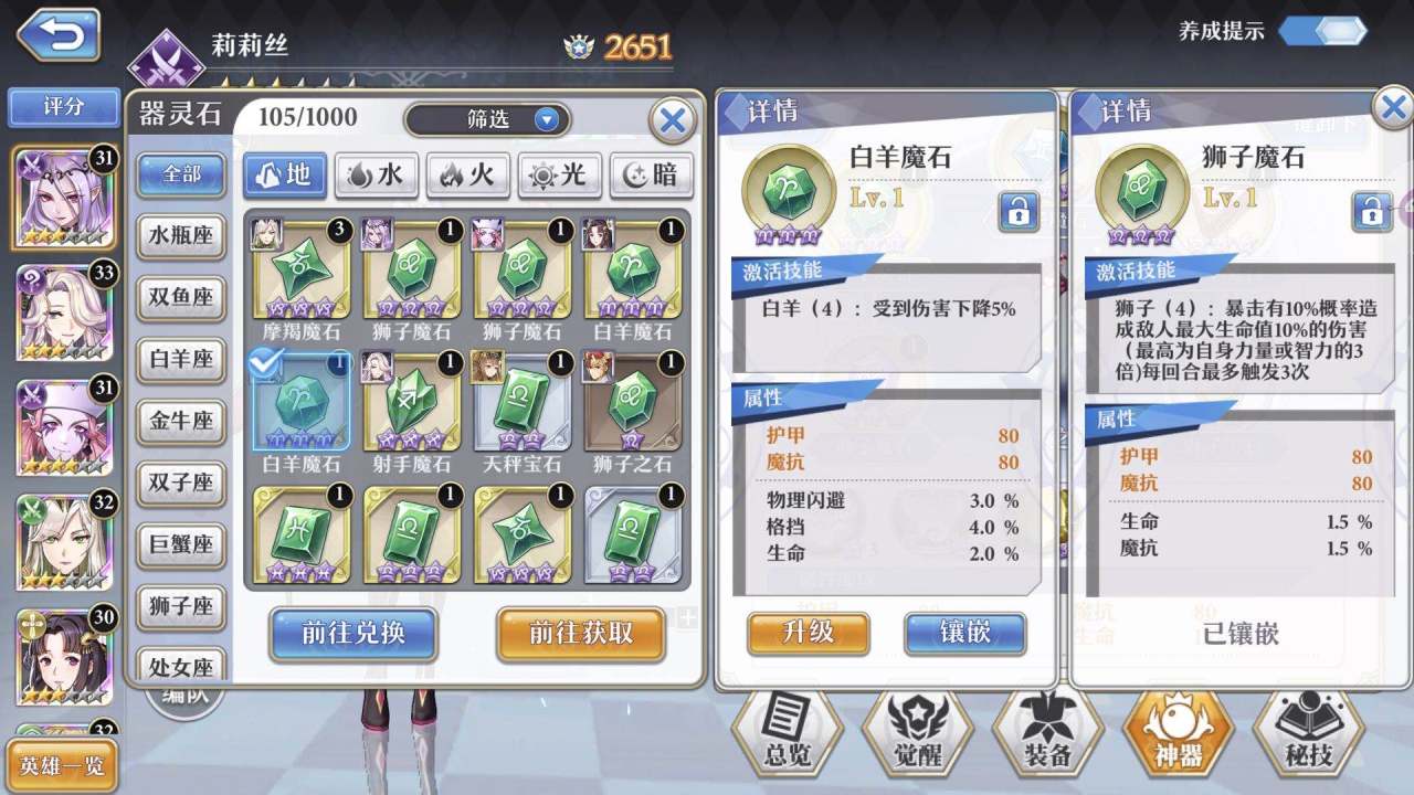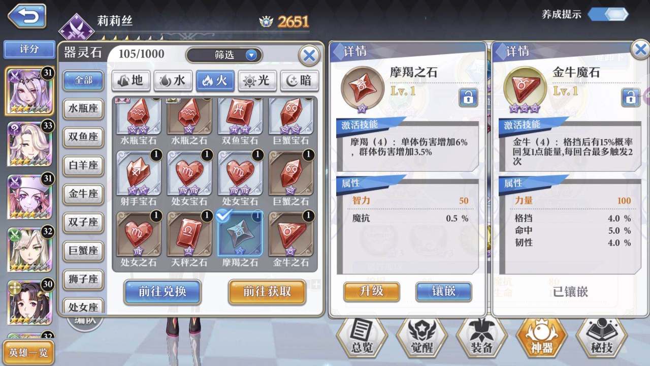宝石属性:暴击、破击属性有限,后期还要带上速度打竞技场。普通属性只要增加智力的就行了。