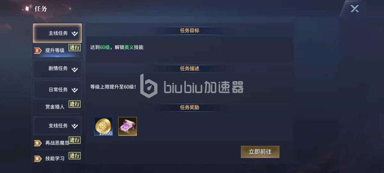 第二,任务的选择,在前期没什么说的一定要跟着主线任务走,不要贪图支线任务,有主线的时候就去做主线,主线断层了再去做支线,其他的活动在主线任务没有清理完成之前不要去碰,收益都不如主线任务高。我们需要做的就是跟着主线快速升级,等级在前期还是非常重要的。