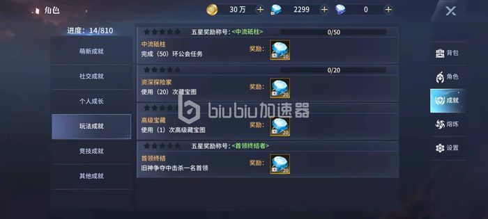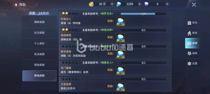 在个人成长玩法中,强化大师成就达到五星就可以奖励称号锻造大师,镶嵌高手成就达到五星就可以奖励称号镶嵌大师,这两个需要在装备强化和镶嵌领域投入很多才可以。在玩法成就中,首领终结成就达到五星就可以奖励称号首领终结者,这个需要在旧神争夺战中击杀首领。