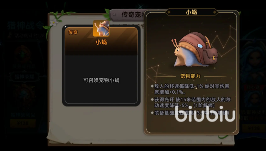 宝物与宠物的搭配方面,武器刚需“弯刀”,能给怪物加“易伤”。头盔推荐“法老面具”增伤,没有可以先随便带个,后面再补。宠物如果有战令的话推荐蜗牛,能够加强整体输出能力。