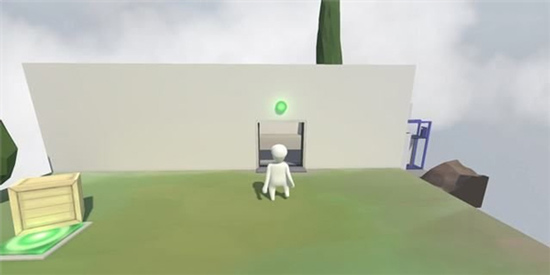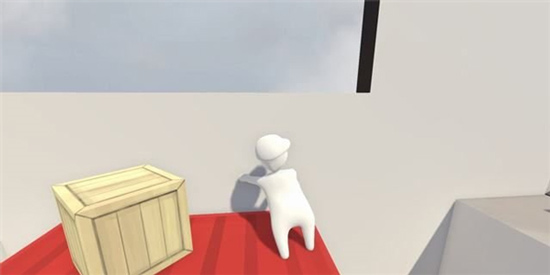 进入第2个房间之后,玩家可以看到这个房间也是同样的需要借助其他的东西打开门。这个房间的箱子在左边白色的围墙上,玩家只需要将视角抬高,抓住箱子一侧,即可把它拖到按钮上。