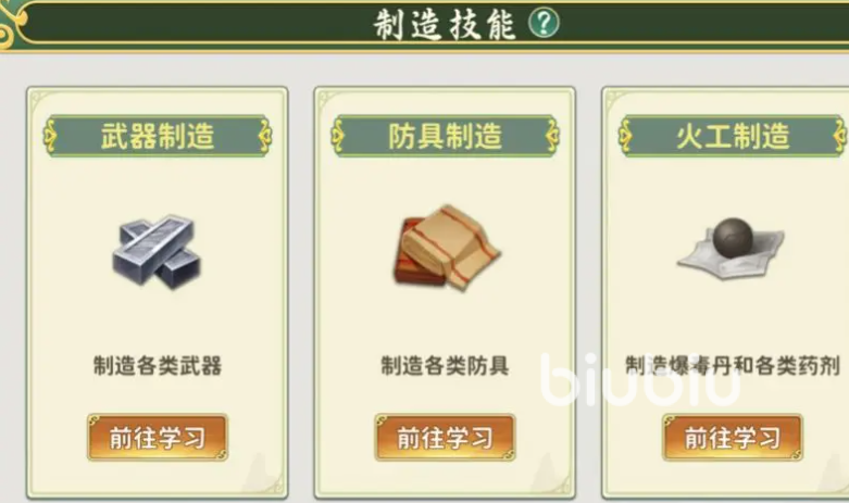 除了主职业外,大家还可以从武器、防具和火工制造中挑选一个专精,学习武器制造就是打造各个职业的武器,防具就是打造出防御用具,火工时打造能带来属性强化的药剂和丹药,日后每打造一件道具,就能提升熟练度,让后期创造出来的利器、宝甲和弹药品质更高,而想要创造出顶级装备,首先需要的就是材料,基础材料可以通过一些不需要的武器、宝石分解获取,高级的需大家进行技能材料加成,让其升级换代成高级,专属稀有则主要依靠开宝箱和刷野怪来掉落。