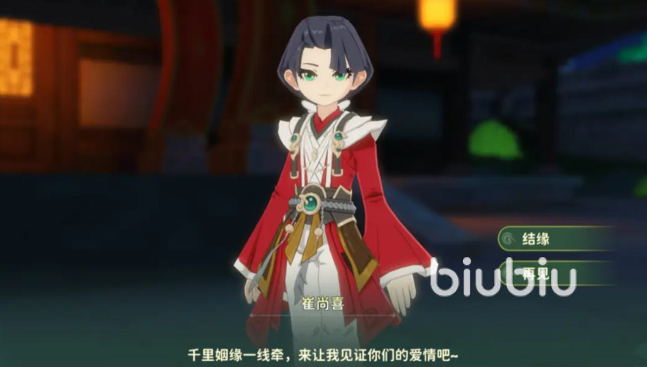 当少侠们等级到45级时就会开启结缘系统,大家需要满足双方无婚约、亲密度大于1600,开服满3天、2人组队且双方均为异性这几大前提条件,满足条件后双方就可以前往崔尚喜处直接进行结缘。