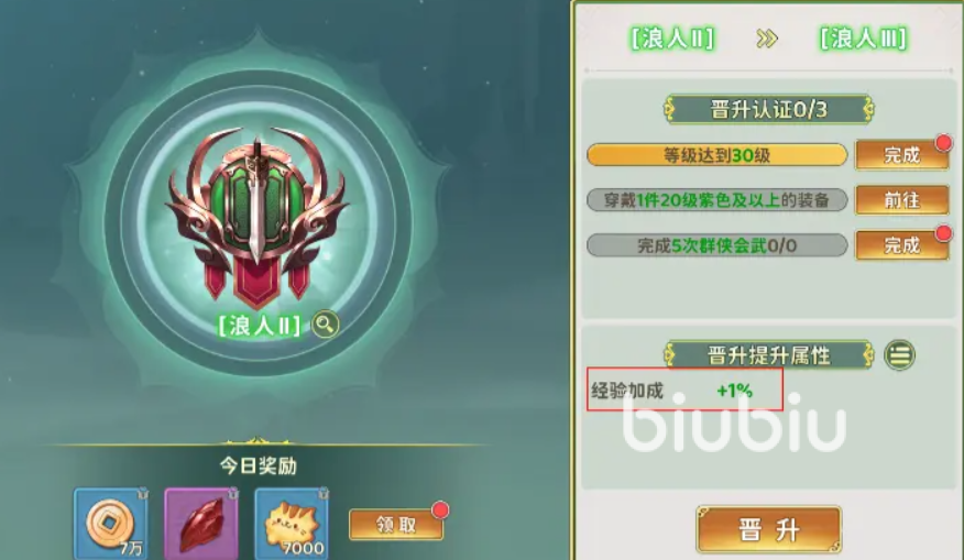 每一次成功晋升后,大家就可以领取到一份一次性的丰厚奖励,当然除了每一个阶段提升的时候能领取到的一次性奖励外,大家还可以根据自己当前的侠名阶段,领取到每日的专属奖励。