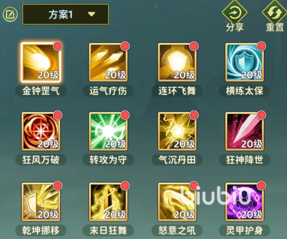 根据这些特性1转,必选点满能增加防御力的“金钟罡气”,以及延长愤怒时间的“狂风万破”,这两个分别能增加防御力和提升爆发,是前期一定要打好打基础,2转就可以去点满“转攻为守”。