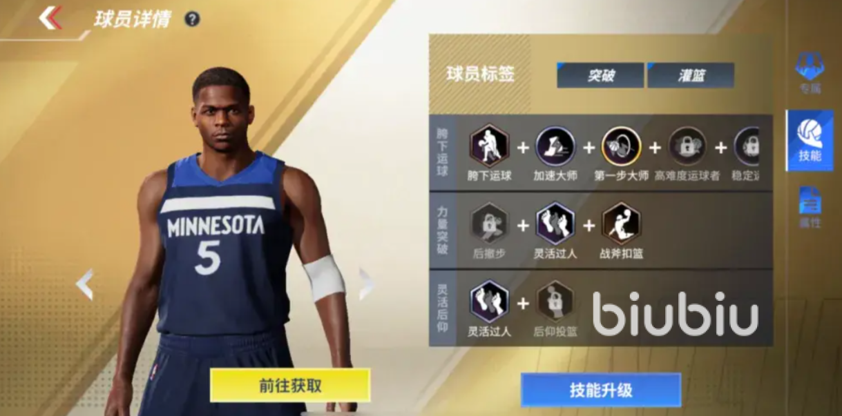 在二级的时候专属技,能提升胯下运球的突破速度,做到更快突破帮助得分,三级的时候会解锁急停转身后仰以及胯下干拔动作,同时还会进一步增加投篮时的抗干扰,哪怕对手的防守很好,也能靠着其能力来轻松应对。