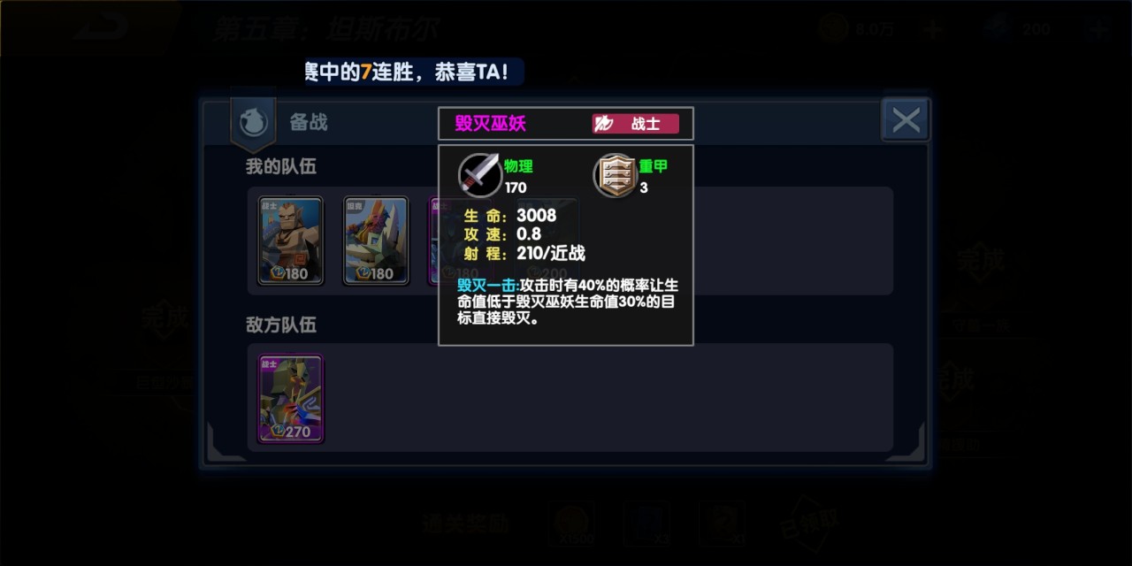 该关卡其实对玩家的运气要求较高,一个闪避或暴击都能极大改变局势,而且极寒巫妖比毁灭巫妖更脆,越到残血越容易被触发毁灭一击。在通关守墓一族后,玩家能获得150金币和2张普通兵种卡。