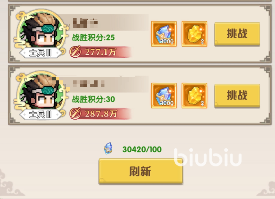 但是在挑战的过程中,初期尽量不要去打太多的对手,因为一旦打太多的话,后面的敌人战力会明显提高很多,这使得玩家们已经无法应对了,后续都无法领取每日的竞技赛奖励,所以每日最多打五个对手就可以了,等战力提升以后再增加挑战的数量,如果期间遇到的敌人都太强了 ,那么就赶紧刷新,将敌人刷新到自己同战力的水平线就可以了。