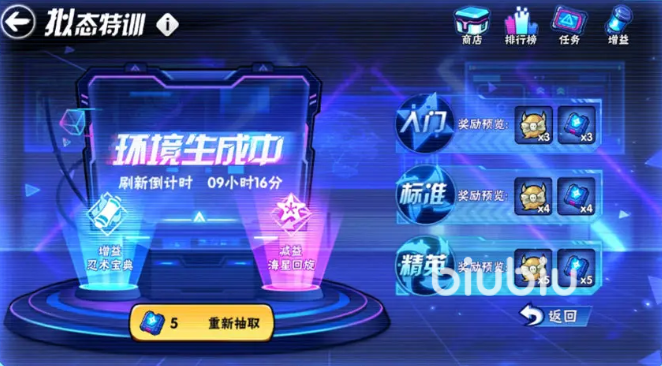 忍者必须死3拟态特训的玩法详情就是以上这些,这是一个相对来说比较简单的挑战玩法,简单在于整体的操作并不复杂,但是其中的战斗还是有难度可选择的,让大家能尽可能的去获取其中的资源奖励,从而兑换更多的好物。