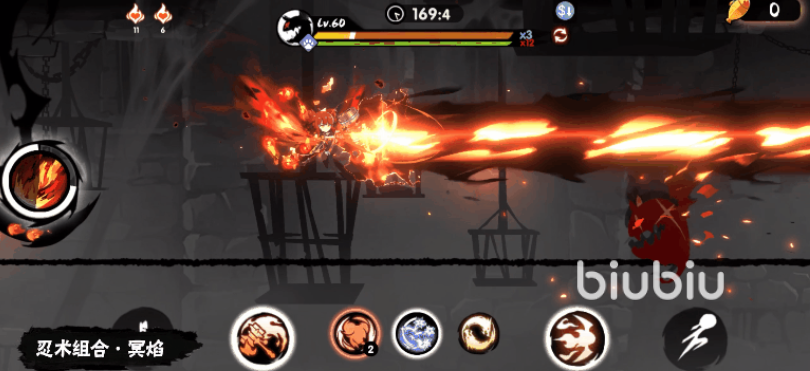 忍者必须死3双焰小椒是一个控制和伤害兼备的忍者,大家在看完技能后,可以在实战时根据boss的特点来切换形态,选择合适的忍术组合攻击,体验两种形态自由切换带来的独特战斗。