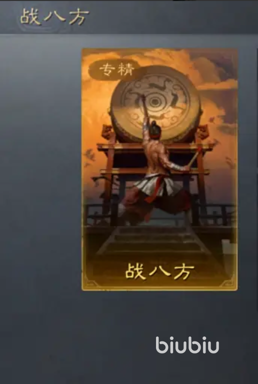 第二个“伐谋”,战斗开始前3轮,自身无法进行普攻,第4、6、8回合结束时,分别对敌军全体造成100%~200%,125%-250%,150%-300%谋略和兵刃伤害。第三个专属战法“专·战八方”,对敌方所有单位造成65%-130%谋略伤害,并施加持续2回合“畏惧”;
