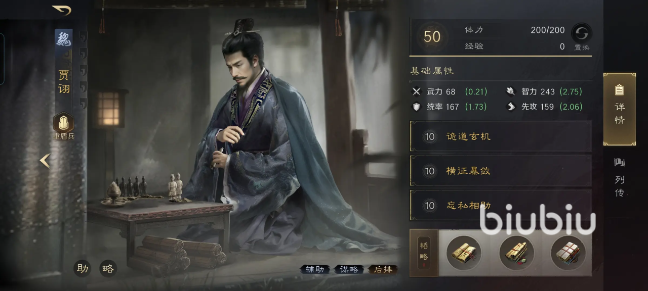 三国谋定天下贾诩这个武将的详情就介绍这么多,这是个功能型角色,不仅能在队伍中补充输出,进一步提升攻击力,且对于友方的回复能力是非常优秀的。如果对该游戏感兴趣,就在九游APP下载吧,九游是手游福利最好的平台,阿里巴巴灵犀互娱也为九游增添一重保障。