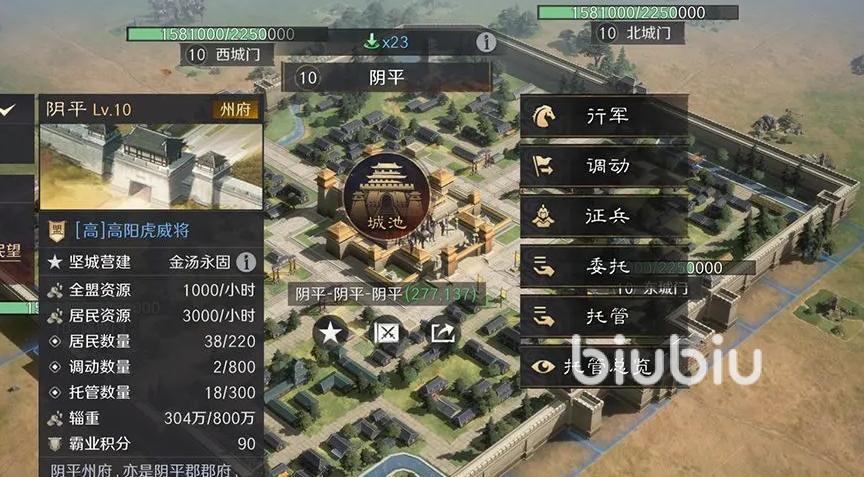 城池防守做了减负优化,可以直接派遣部队入驻城池兵开启自动防守,并且会自动补兵。成长体系这一块也做了调整,取消了绿瓦捐献机制,而是采用更多元的“营建值”获取方式,刷贼、开地、占据点、迁入封地等等都会提高城池的等级。等级提升也会带来耐久、驻军上限的提高,并解锁建造加速、资源收益up、迁城、战损降低等一系列效果。到达一定等级后,还会进一步解锁“托管防守”,释放压力,最多还能驻扎2个部队。
