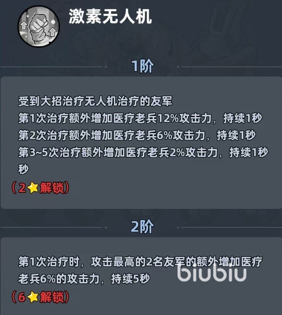 在被动方面,厨神有一个很强的被动是在战斗开始时额外附带一份能量饮料,友方任意角色能量大于50%的时候,消耗一份饮料恢复40%的能量。医疗老兵的被动技能特点是继续强化自身的额外治疗能力,并且为友军附加攻击力加成效果。所以不难看出,厨神在能量循环和推图方面更加强势,医疗老兵在需要净化和一些高难度战斗的场合下要更具优势,如果资源足够,小编更推荐大家直接全部选择下来走双辅路线,这样容错率直接拉满。