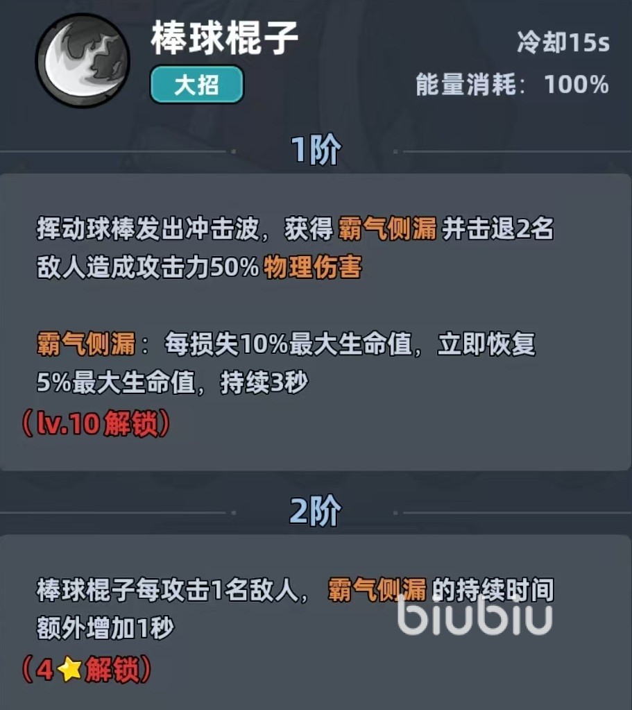 大招效果是发出冲击波,获得霸气侧漏,并击退两名敌人。霸气侧漏的效果是每损失10%的生命值,可立即恢复5%的最大生命值。结合这样的技能特点,极道大佬就是当前物理队的专属坦克,他依靠自身技能带来的格挡、免伤和物理易伤等特点,很适合搭配物理输出。自身越打越肉,在boss战和一些长时间的战斗中坦度极强。在养成的时候,属性方面格挡率是最优属性,接下来才是生命、防御和免伤,主堆格挡和生存,这样才能更适合叠免伤机制。在升星的时候一定要优先升到三星,三星可以解锁同袍之谊,达到五星时叠满免伤,并附带反击伤害,将生存和辅助属性直接拉满。