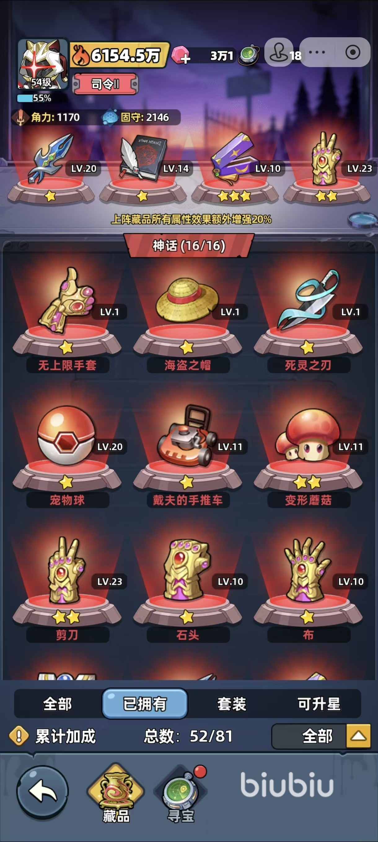 然后就是藏品基本上是可以携带10件-16件的样子,如果玩家们的神话藏品数量实在是太少的话,至少在中间的格子需要携带一个神话藏品,后续其他的格子可以选择蓝色或者紫色品质的,同时中间的藏品方面要尽量选择核心藏品,就是增加角色技能伤害的,最外围一圈的藏品可以选择防御属性的,从而提高角色的容错率。