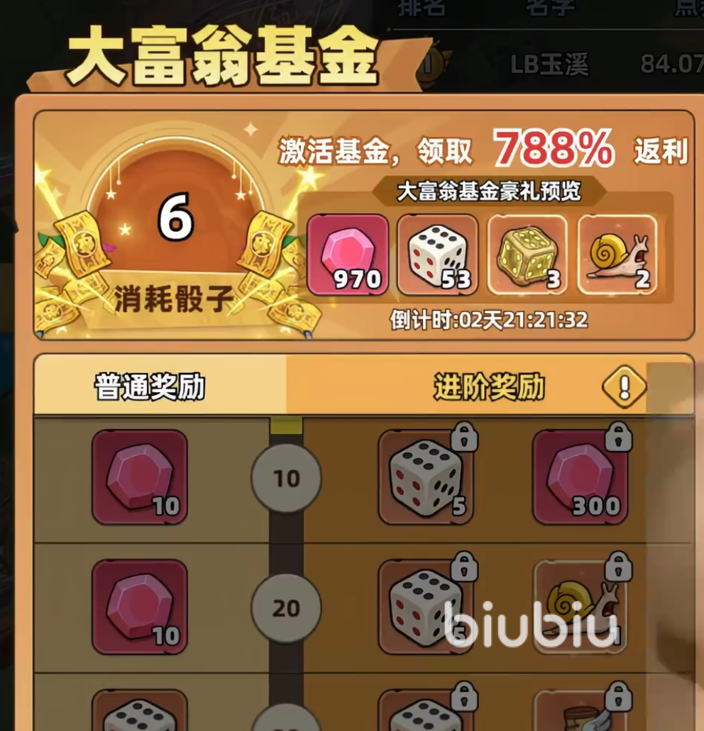 生存33天的大富翁活动基本照搬了大富翁原版的玩法,也就是通过投掷骰子在棋盘上移动,每格都有对应的奖励以及惩罚,基础资源格有着最常见的资源,如金币、石油等资源,而稀有道具格则会随机出现招募券、限定装备图纸等内容。