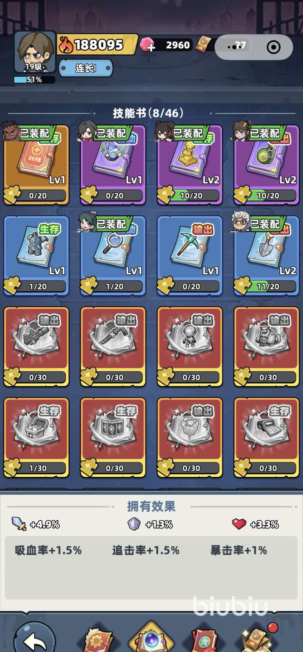 在该游戏中角色的成长主要分为等级提升以及技能书的搭配了,技能书不单单会对技能形成一定的影响,也可以通过属性加成的方式,对角色的定位更加清晰。所以玩家可以根据自己对角色的定位方向,选择适合的技能书来用。