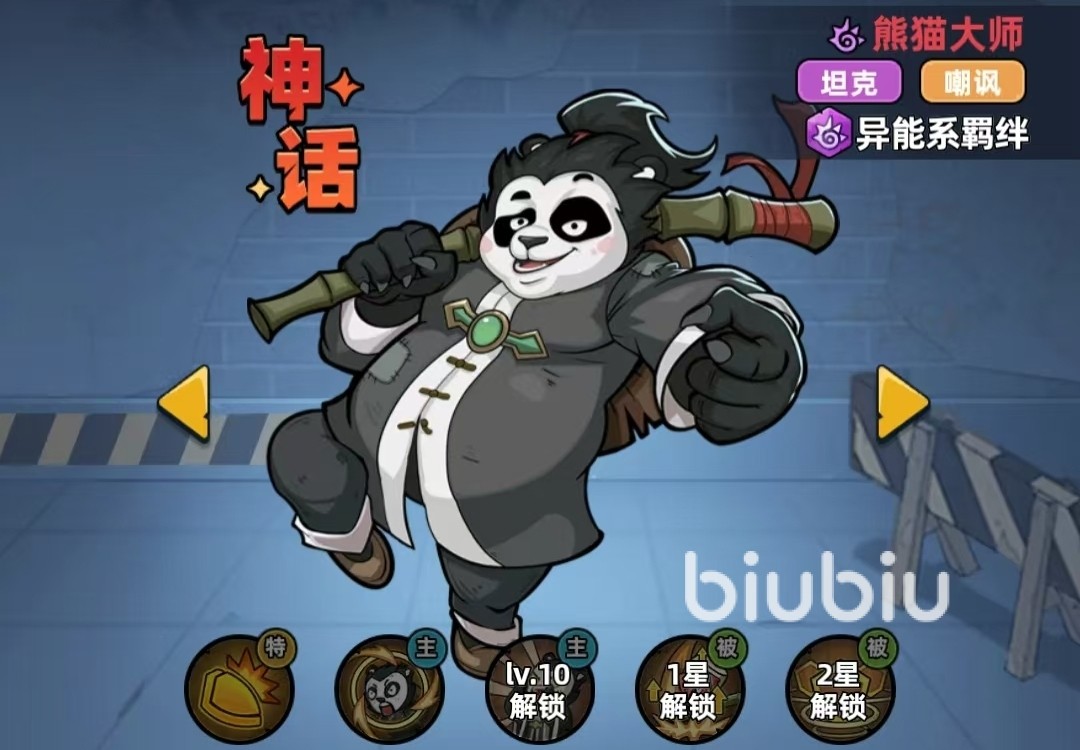 自身具有高坦度,还能给队友提供团队增益的熊猫大师,也是属于半辅助性角色,其“醉拳”技能既可以造成敌人伤害,还能给自己提供一定的回复,同时给对手施加额外的10%异能易伤状态,大招还有“嘲讽”的效果,降低各方面防御属性。