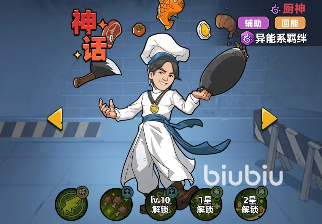 异能系的核心治疗辅助角色,其通过技能可让队伍中,最低血量的队友快速恢复高额血量,还能让队友附加“真好吃”状态,可获得长达20秒时间的持续回血,同时,厨神自带的三份“黯然销魂饭”,可给血量低于50%的队友快速回血。