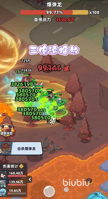 随着战斗的深入,爆弹龙速度、攻击频率会越来越快,这时玩家要保持灵活的拉扯战术。当爆弹龙停下脚步的时候,就可以在其后方进行集中输出。值得说明的是,boss血量到50%时就会出现一大波小怪物,小怪会自动爆炸。如果这时不能集中精力清理小怪,屏幕上满是爆炸的怪物就会导致玩家迅速死亡,所以必须全力击杀这些小怪,以免被它们连锁反应炸死。