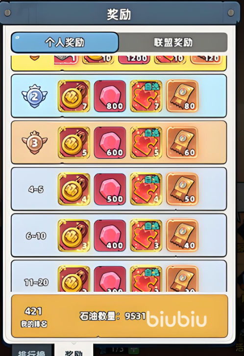 每次挑战都能固定获得100石油币,活动结束后,这些没有使用的道具会自动转化为钞票,奖励区分为个人和联盟的,个人榜首有强力藏品,联盟排名越靠前,共享的石油币和资源就越丰富。