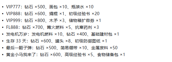 生存33天礼包码分享 生存33天礼包码激活方式