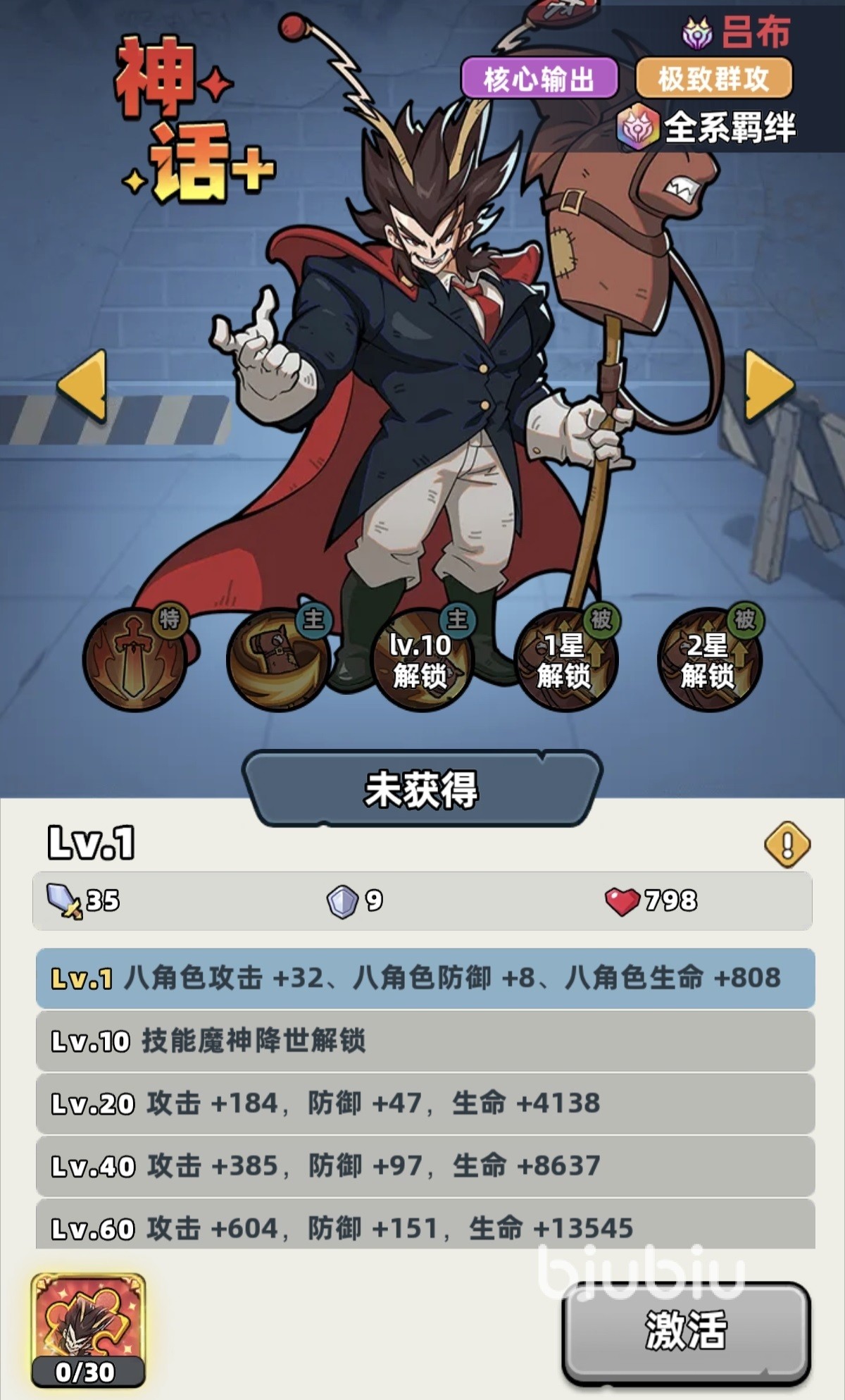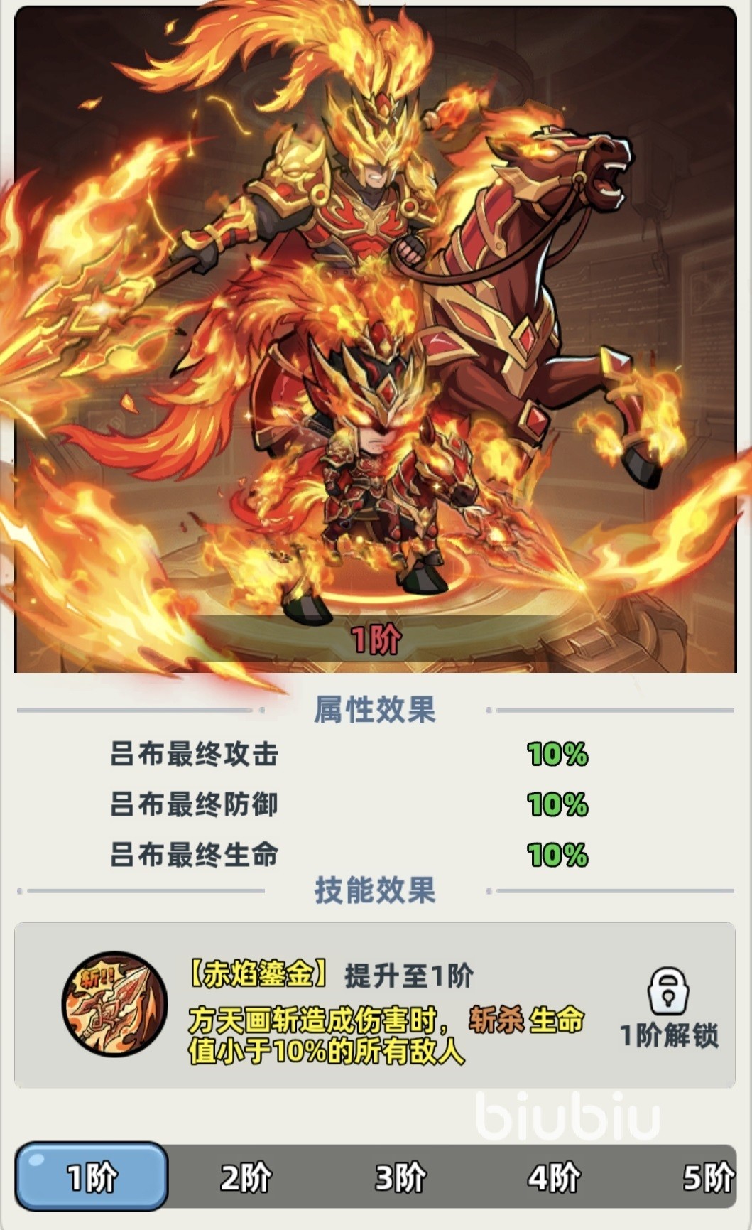 自身技能可以对多个目标造成神圣伤害,并附加撕裂效果,还能变身为魔神状态,对周围多个目标造成神圣伤害。在升级之后强度更为可观,培养价值极高。因为吕布自身的定位是主c,擅长范围清场和持续撕裂爆发,所以无论是在推图、爬塔还是联盟各大玩法中都有很强的发挥。实战中需要大家控制血量在40~60%之间,这样可以获得吸血和攻速的双收益。先用一技能叠加撕裂,然后大招变身爆发,无双叠满之后就能自动清场,可以说带有吕布的阵容,只需要这一个输出就足够了,所有资源全都堆给吕布。
