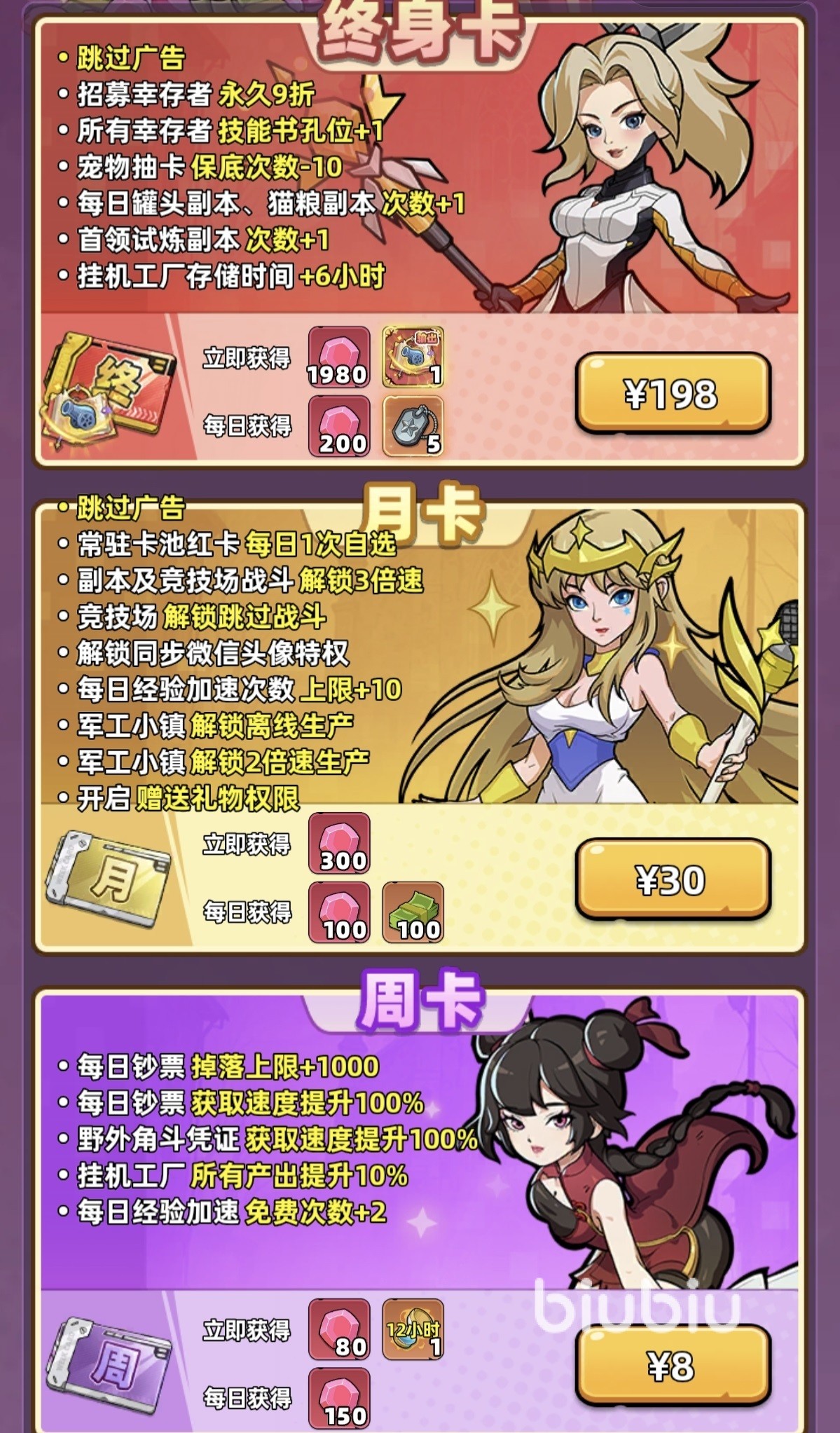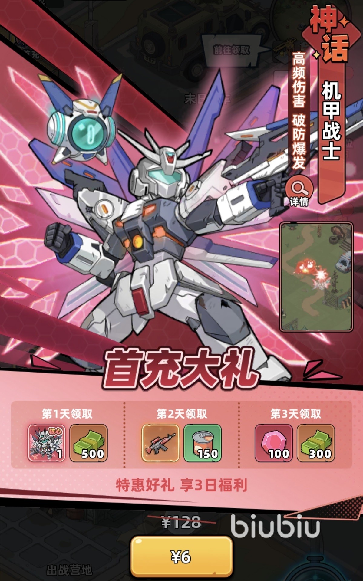 微氪玩家玩游戏一定要来九游下载,九游是手游福利最好的平台,只需开一张省钱卡就能每月拿60元代金券,全年一共能拿720元。再加上还有大量免费礼包领取,各种节假日和活动礼包随时更新,这样有了代金券和礼包资源,游戏也就更加轻松。在这款游戏中,氪金优先级最高的就是6元首充、1元藏品手套、周卡和月卡,这些属于微氪玩家一定要入手的。6元首充给的机甲战士,是t0级开荒输出,拥有破防和AOE效果,前期清怪推图效率极高。1元藏品首套带来前期战力和生存双提升,打boss和刷图必备。