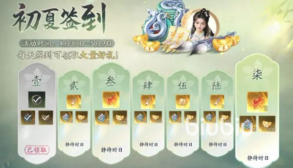 首先是初夏签到,时间为4月30日维护后到5月9日,只要少侠们等级达到30级,并且在这个期间连续签到,就可以领取到穗月华章头像框、荧惑晶、寻武今天眷妙笔·绑等丰厚好礼。