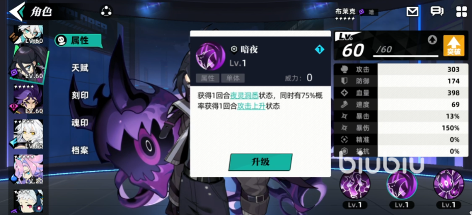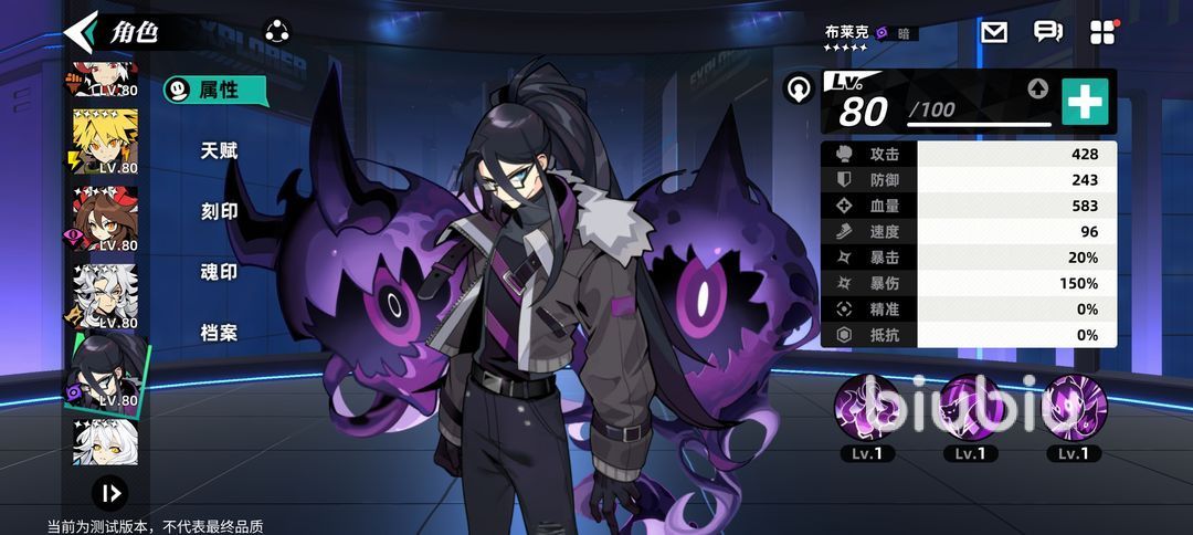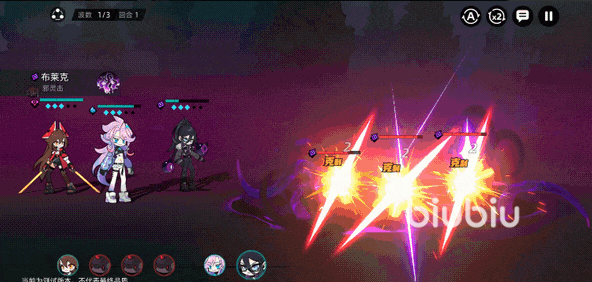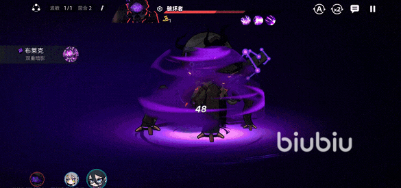 当前这个角色在游戏中的属性定位是暗系的,所以其整个装扮都是偏向于暗黑风格。其中他的首个技能是在击中敌人之后,对他们所有人都会有一定的几率添加不是控制类型的弱化效果,这个会持续一个回合。