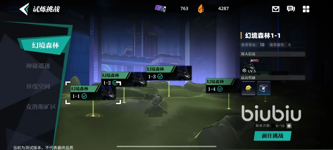 2、该模式一共有着四个小副本,分别是幻影森林、神秘遗迹、异国空间、克洛泽矿区。每个挑战关卡都有不同的BOSS防护,玩家可以在挑战前检查BOSS的属性以及相应的技能,并根据这些属性治疗来合理匹配阵容,从而快速击败他们。