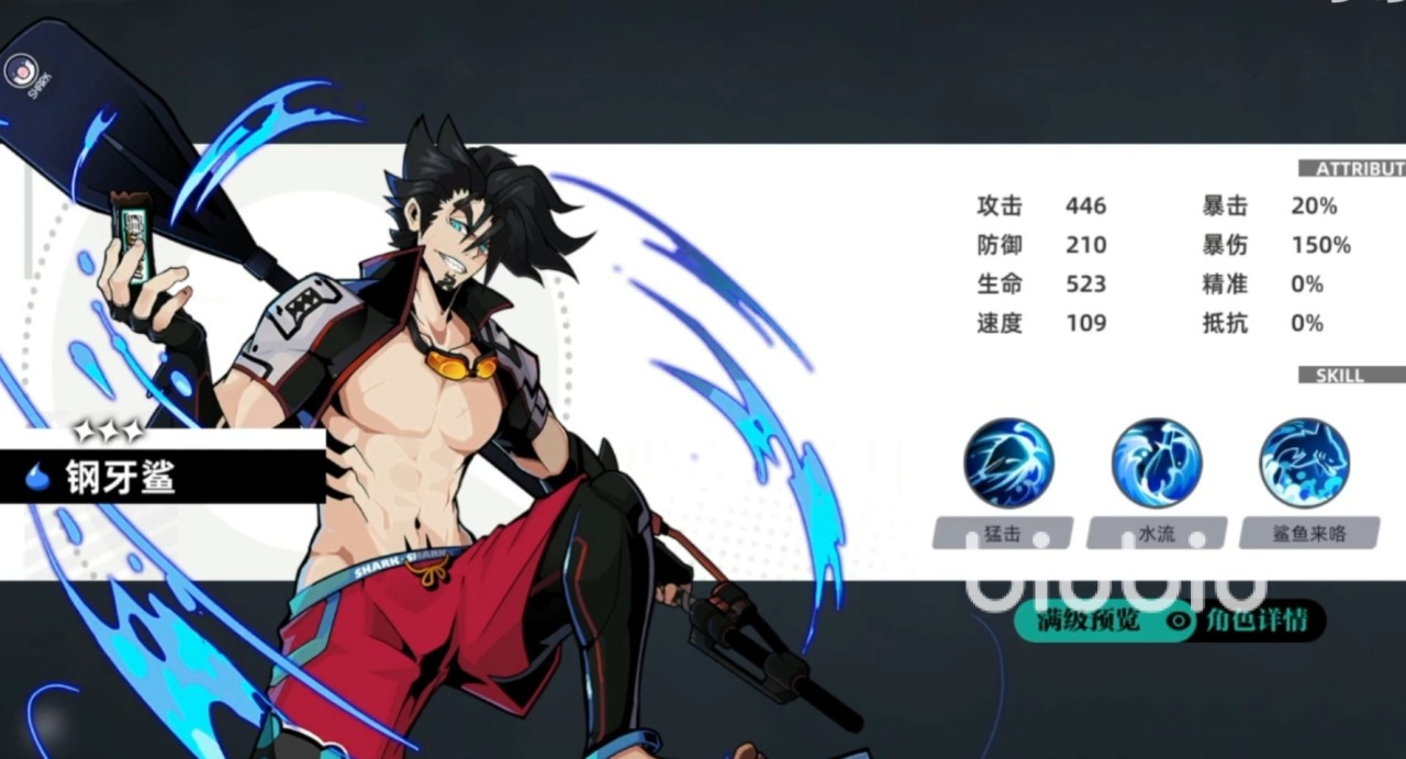 小编第四个推荐的精灵是钢牙鲨,钢牙鲨是比较好抽的精灵,但是在同档次的精灵中,他的战斗力还是不错滴,尤其是钢牙鲨的大招所召唤出来的大鲨鱼可以把敌方目标撞飞,这个攻击造成的伤害绝对不少,但是这个精灵只值得在前中期的时候进行培养,毕竟到了后期,玩家如果可以获得攻击力更强的精灵的话,那还是放弃钢牙鲨比较好。不过在前中期,钢牙鲨的战斗力还是够用的。
