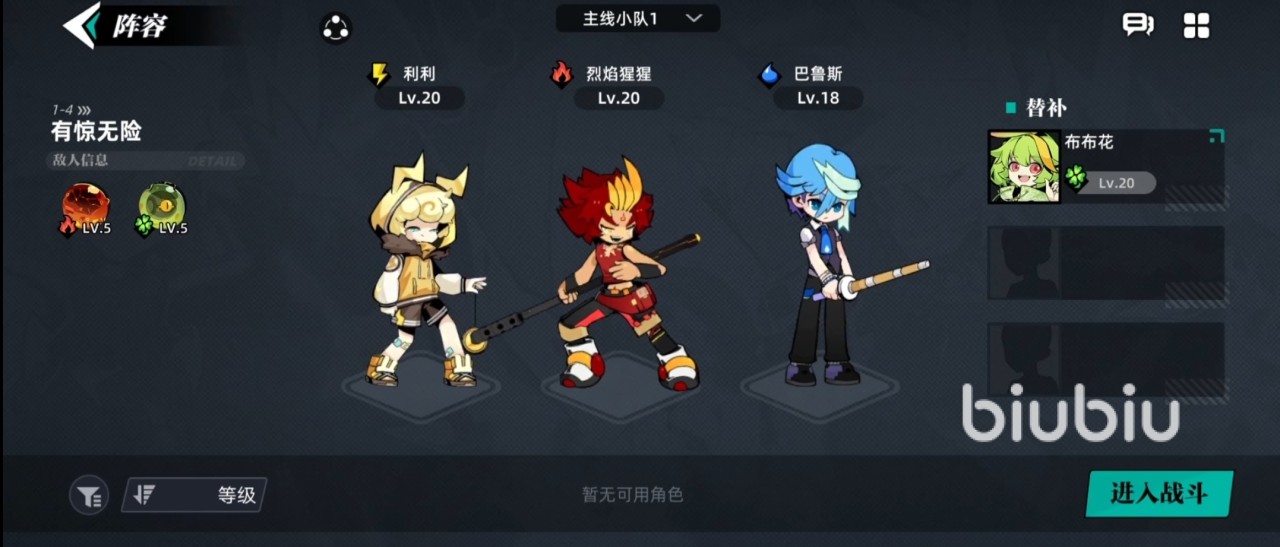 搜寻小队的阵容搭配为利利+烈焰猩猩+巴鲁斯。