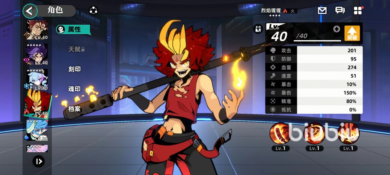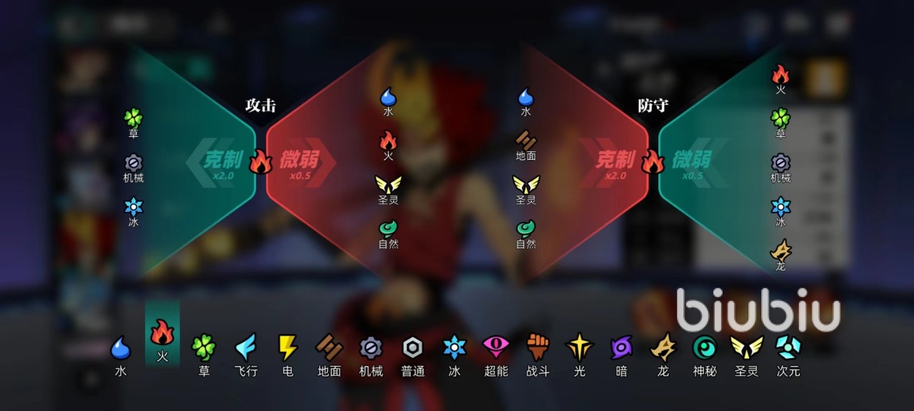 要想达到这一项目的,首先要知道自己所有属出战角色属性是哪些,对方属性如何,以及相互之间有怎么样的克制关系,这些都可以在详情中查看到。进入角色界面中的时候,可以点击任何一个精灵,然后从详情中看到其所属属性。例如以初期就能获取的几名角色为例,烈焰猩猩是火属性可以克制草、机械和冰,但是对于水、火和圣灵以及自然等,就只能带来微弱影响。微弱也是克制关系中一环,如果是克制那么就能造成双倍伤害,如果是微弱,只能输出一半。
