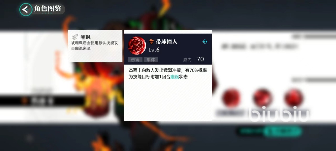 第1个技能带球撞人,向选中敌方目标发起猛烈冲击,在冲撞之后有几率为目标附加嘲讽状态。被嘲讽后敌方会强制攻击施法来源,这样就起到了保护其他队友的作用。通过提升技能等级,后续概率还会进一步提高,最多能达到70%。第2个技能同样是单体伤害类型,杰西卡将手中球投向敌人,造成伤害后以损失自身生命值为代价,为敌方附加速度下降状态。本身血量比较高,所以损失一些也不影响生存,但是对方速度下降后就失去了率先出手机会,对战局影响比较大。