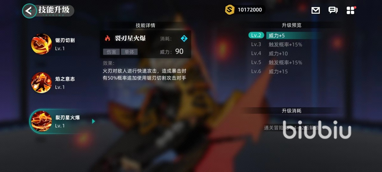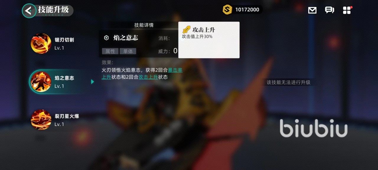 第2个技能焰之意志,火刃在使用之后自身暴击率上升和攻击上升,这是一个典型进攻状态,使用之后触发暴击几率大大提高,再附加上攻击提升,使得火刃完全能媲美5星角色输出。最后一个技能裂刃星火爆,同样是单体伤害类型,选定目标后对敌人进行快速攻击,一旦触发暴击可以追加一次锯刃切割。如果锯刃切割在此状态下被触发,那么对方几乎肯定会被无法治疗所影响。