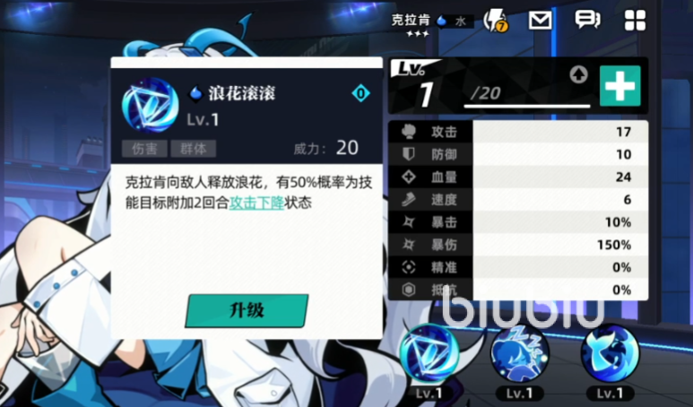 首先要认识的便是她的技能了,在这里她的能力基本都是群体类型的,其中有一个就是可以较大几率为敌人添加一个减益效果,在等级提升之后触发的概率会更高一些,同时攻击出来的效果也会更强。