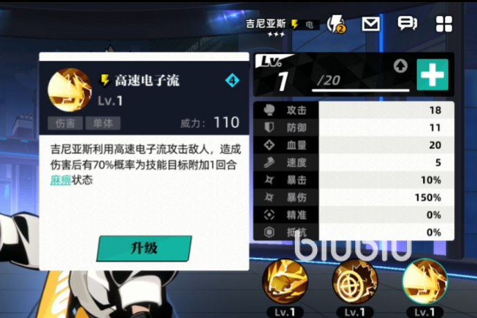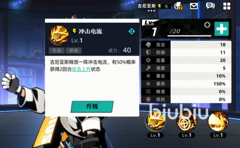 此角色的攻击方式基本都是与雷电相关的,其中首个能力就是通过使用电流来攻击对方某个人员,同时会有较高的概率提升自己的攻击力,获取到此效果的话,在后面两个回合中都可以享受到对应的加成。