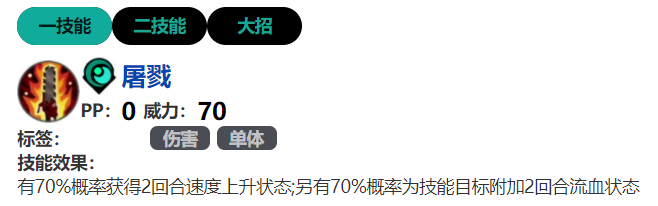 该角色的属性现在是最强的防守属性,基本上只弱一个超能,所以游戏里面没有多少的天敌可以针对她,该角色的一技能是屠戮,单体攻击技能,没有多少伤害但是能上升自己的速度,并且有概率触发流血。