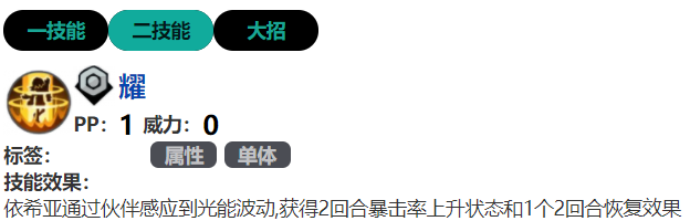 增益的效果是依靠二技能辉的效果触发的,使用一点行动值之后可以提升积极的暴击和恢复效果,有了这个只要爆伤足够的话就能打出高额的伤害,多以说这个角色也是可以作为光属性的输出存在的。